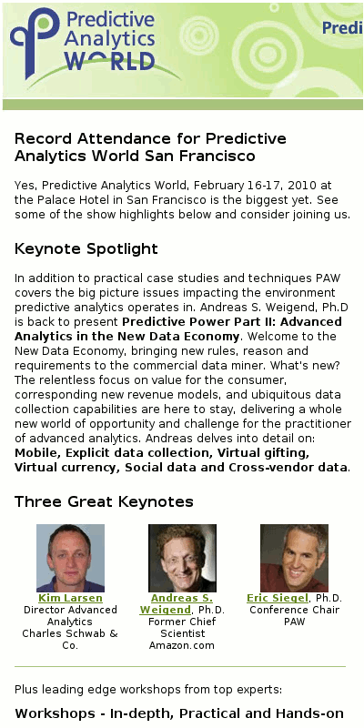 PAWS is coming this time to the Bay Area in two weeks. It is also almost coming at the same time as the conference Big Data Summit so SF bound conference attendees can probably do both.