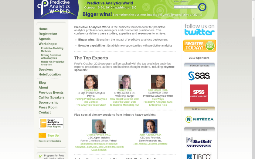 www.predictiveanalyticsworld.com/sanfrancisco/2010/agenda_overview.phpBe sure to register by September 10th for the Early Bird rate (save $200):