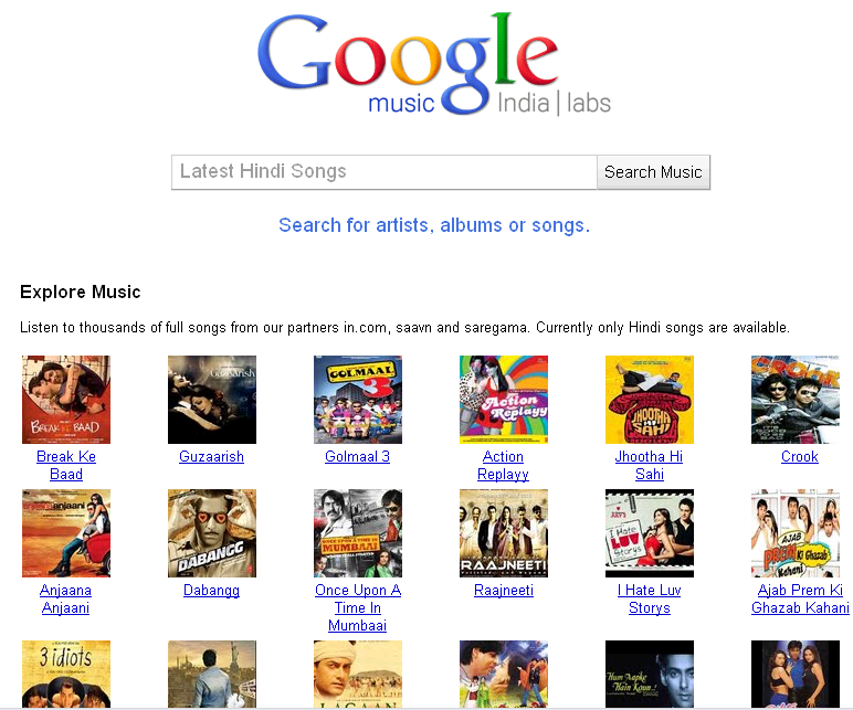 Listen to some nice Bollywood music on Google India