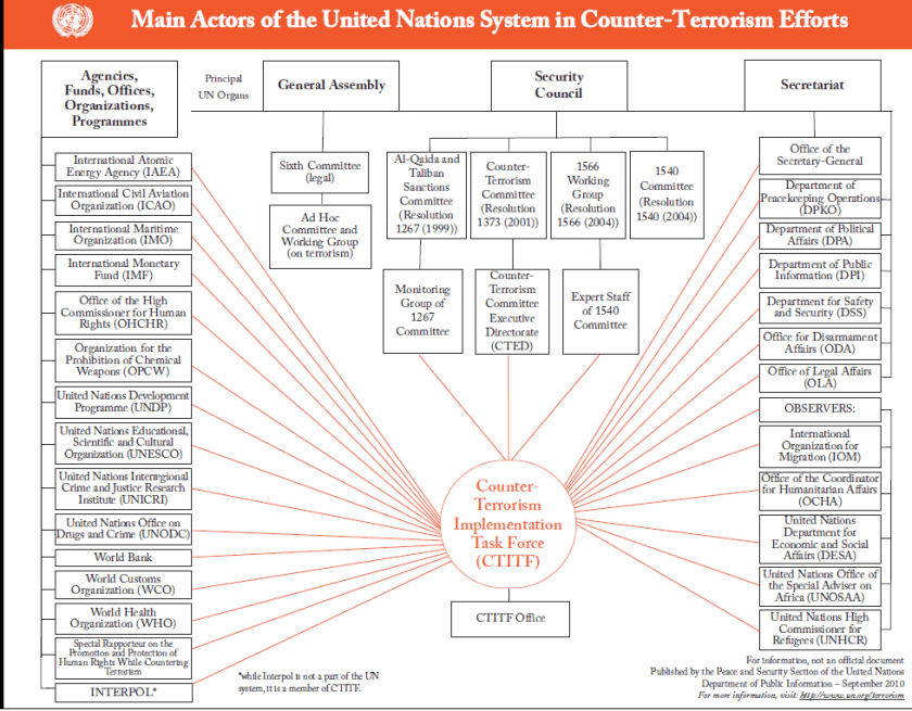 Here is an amazing organigram depicting the organization of United Nations Task force of Countering Terrorism