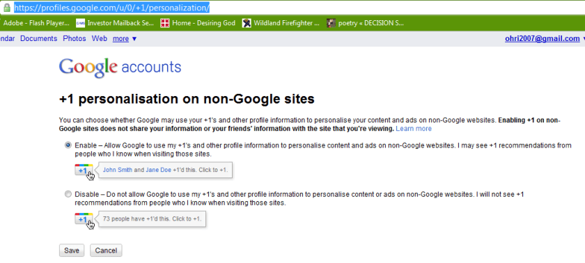 Your +1’s are public. They can appear in Google search results, on ads, and sites across the web. You’ll always be able to see your own +1’s in a new tab on your Google Profile, and if you want, you can share this tab with the world.