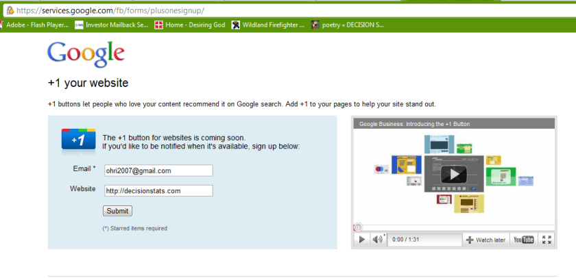 Your selected experiment: You have joined the +1 button experiment. Note that you can only join ONE experiment at a time.
