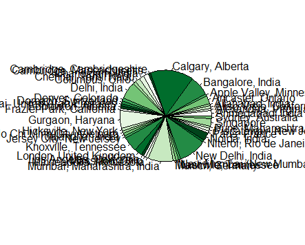 pie(table(my_friends$location),col=brewer.pal(20, "Greens"))