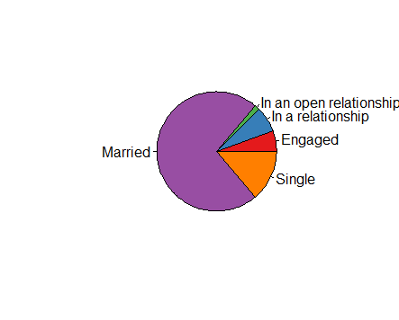pie(table(my_friends$relationship_status),col=brewer.pal(5, "Set1"))