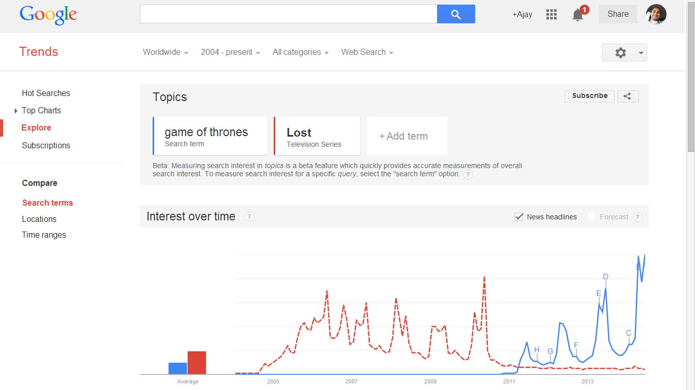 http://www.google.com/trends/explore#q=game%20of%20thrones%2C%20%2Fm%2F0828jw&cmpt=q
