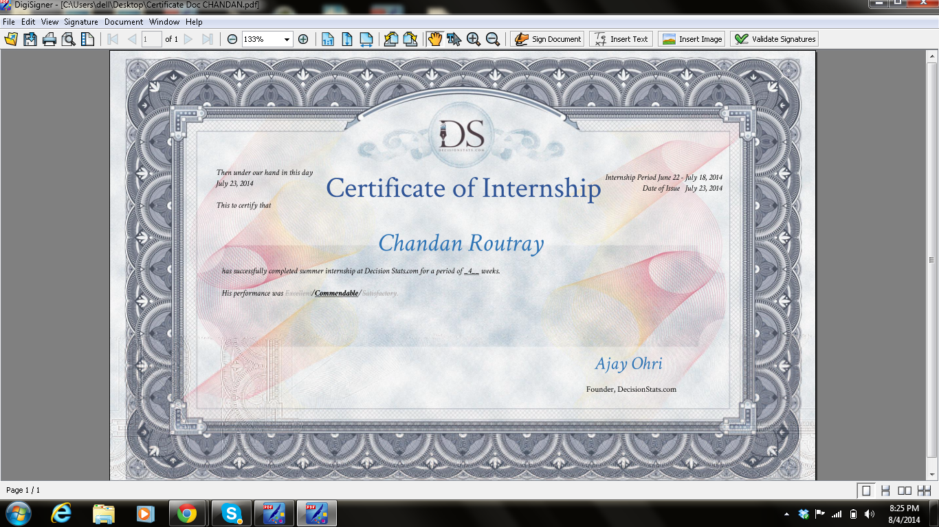 The following certificate is awarded to Chandan Routray (https://www.linkedin.com/in/chandanroutray) , a 2yr student at an IIT who learnt all this