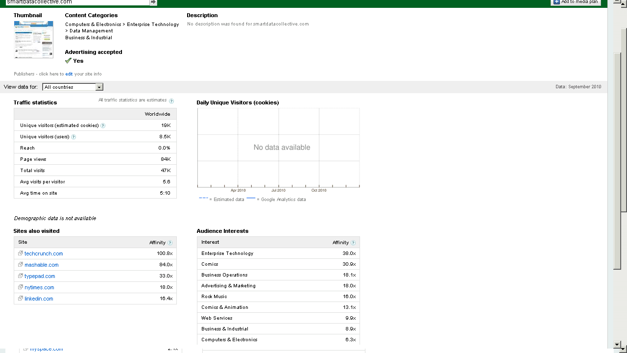 DoubleClick Ad Planner is a media planning tool where advertisers find sites for their media buys. As a site owner, you can access the DoubleClick Ad Planner Publisher Center and