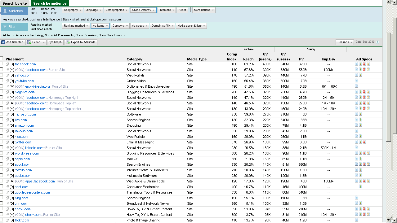The new Google Ad Planner is really nice-seems better than old Adwords interface, though needs a UI redesign before it can complete with the clean cut slice and dice of Facebook Ad Planner.