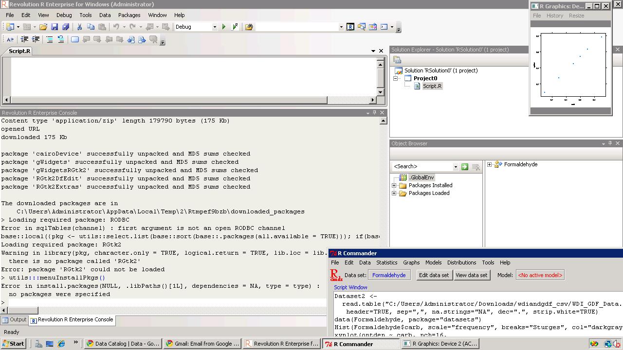 You can thus combine R GUIs (like Rattle , R Cmdr or Deducer based upon your need for statistical analysis, data mining or graphical analysis) , with 64 Bit OS, and Revolution’s REvoScaler Package to manage huge huge datasets at a very easy to use analytics solution.