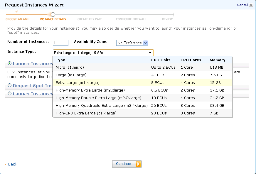 The Cluster Compute instance family currently contains a single instance type, the Cluster Compute Quadruple Extra Large with the following specifications: