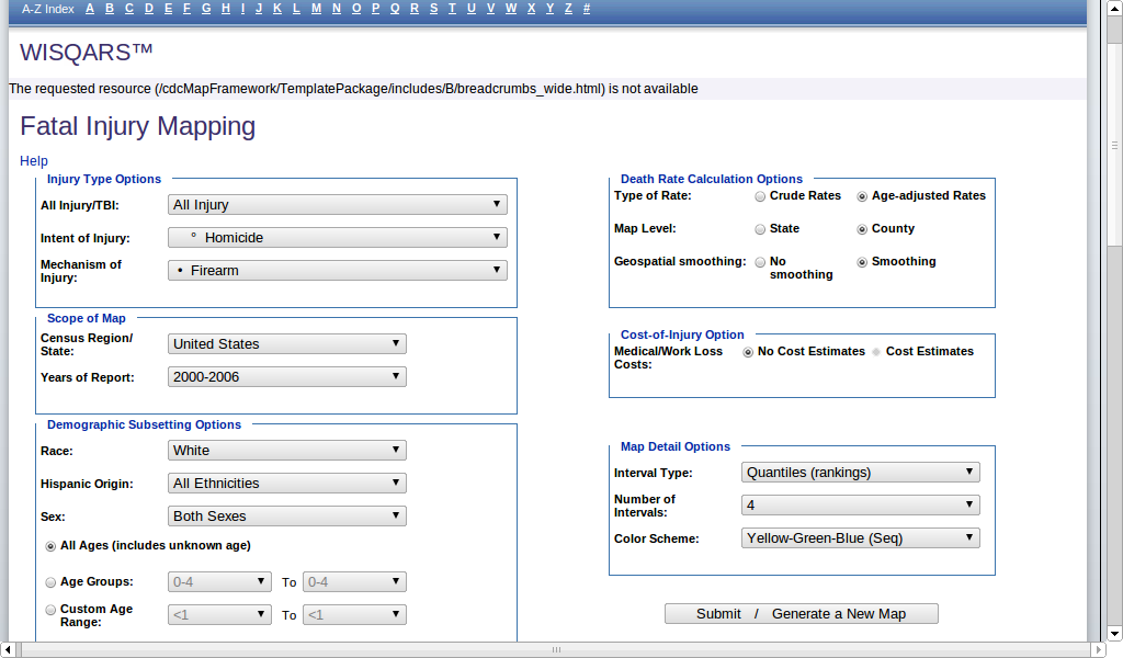 The tool is hosted at http://wisqars.cdc.gov:8080/cdcMapFramework/