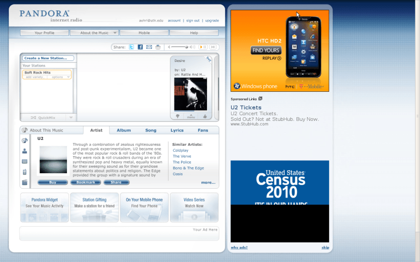 5) Pandora.com