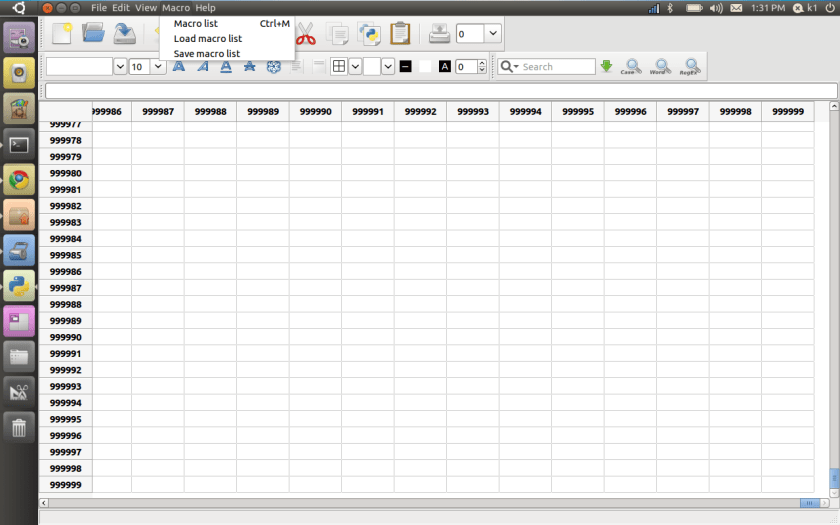 • Three dimensional grid with up to 85,899,345 rows and 14,316,555 columns (64 bit systems, depends on row height and column width). Note that a million cells require about 500 MB of memory.