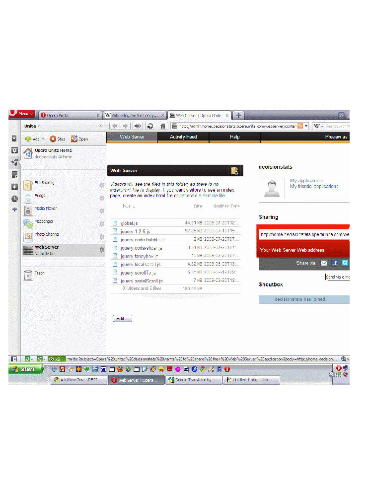 Opera Unite features a Web server running inside the Opera browser, which allows you to do some amazing things. At the touch of a button, you can share images, documents, video, music, games, collaborative applications and all manner of other things with your friends and colleagues