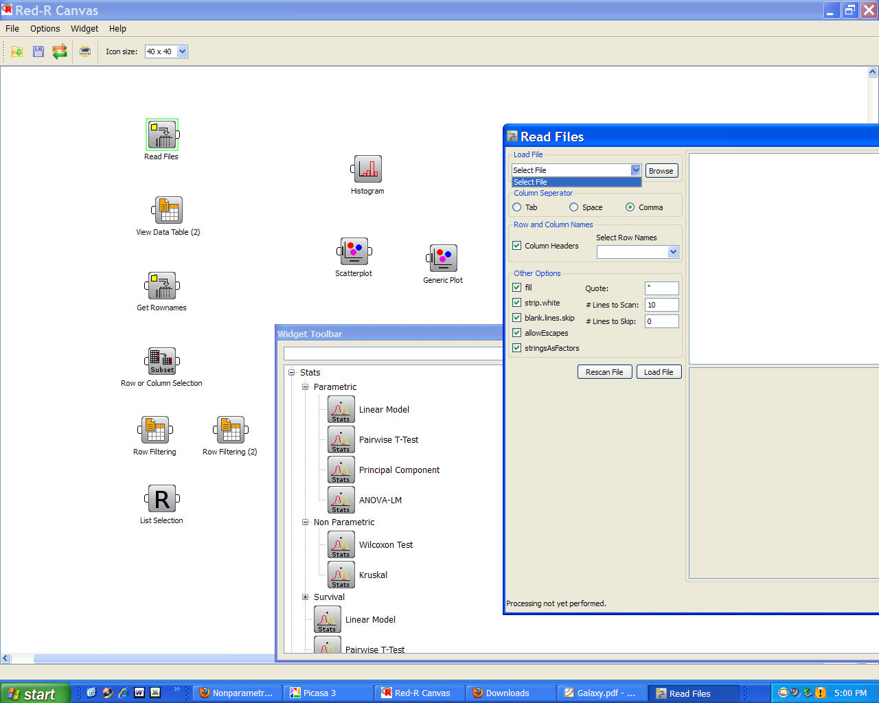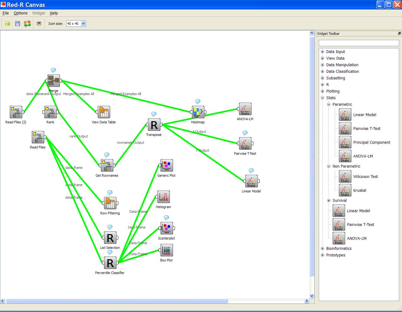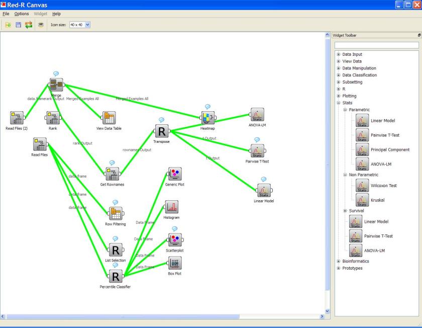 RServer, invoke R commands for processing, and display the resulting R generated statistics and/or graphs